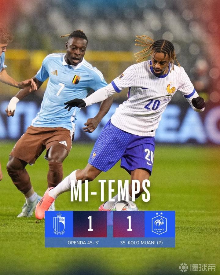 半场比赛数据显示,法国队在上半场占据绝对优势。控球率达到57%,射门、传球、抢断等方面均超过比利时队。然而,比利时队在关键时刻表现出色,成功将比分追平,展现了他们的不屈斗志。